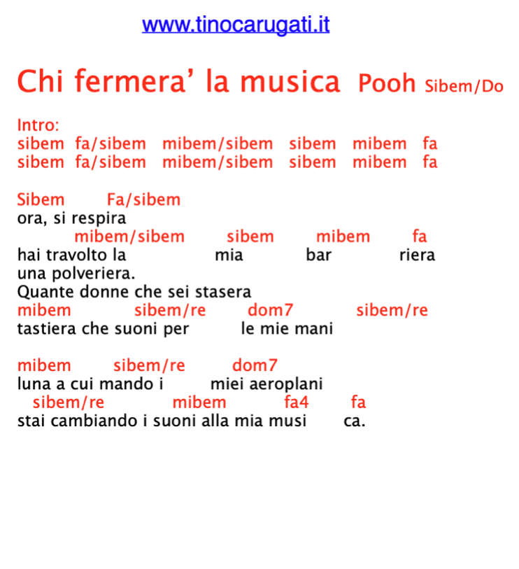 “CHI FERMERA’ LA MUSICA” Pooh – Testo con Accordi