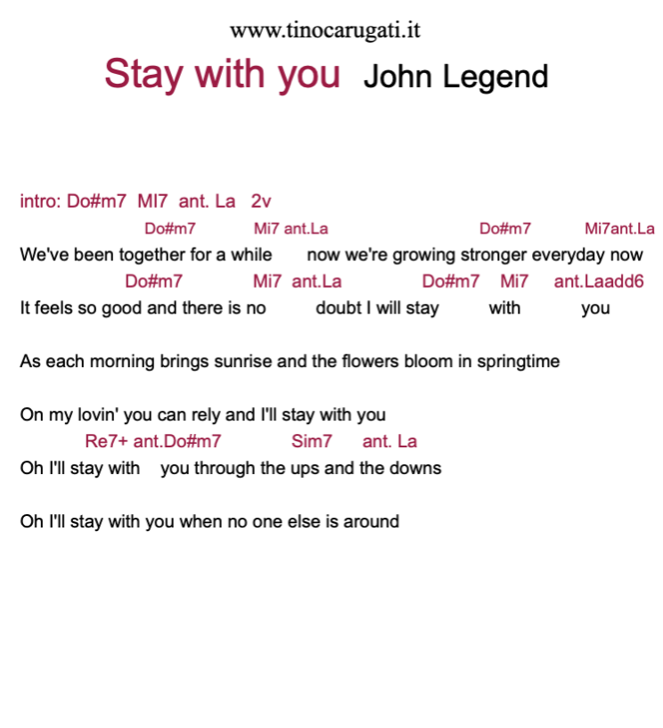 “STAY WITH YOU” John Legend – Testo con Accordi